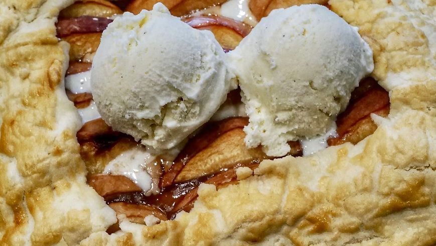 Arrange the peaches in the center of the pie, leaving about 4-5 inches of space around the edges.