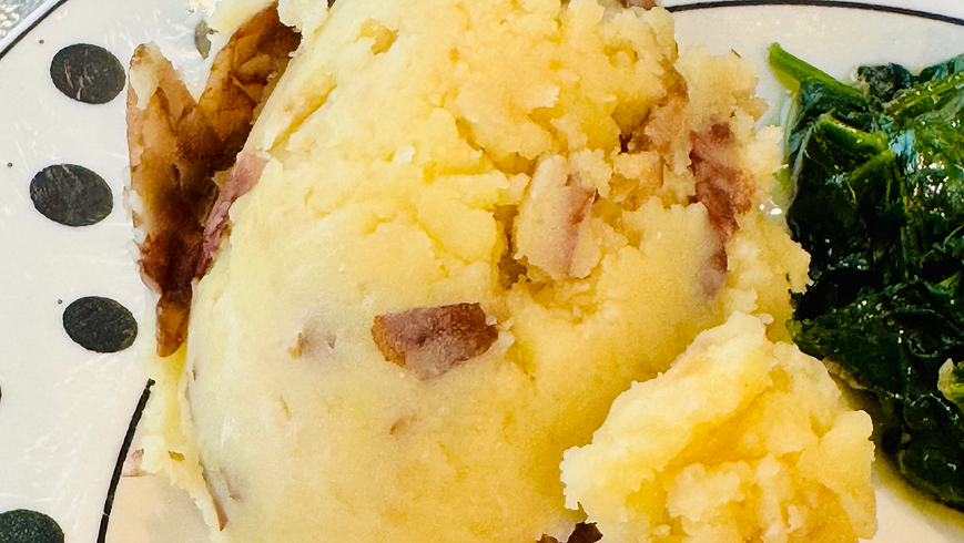 Use a potato masher to mash the potatoes until they’re smooth and creamy.